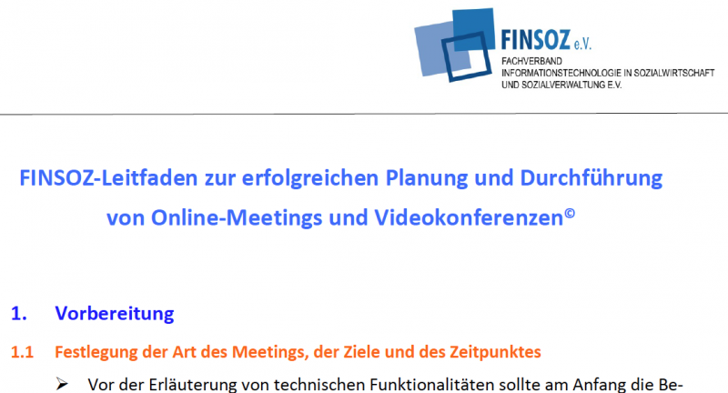 FINSOZ veröffentlicht Leitfaden zur erfolgreichen Planung und Durchführung von Videokonferenzen