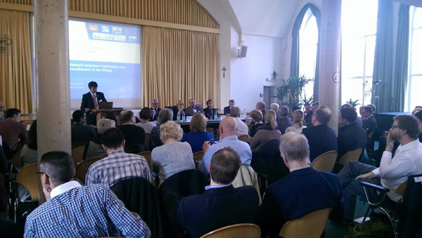 Highlight der diesjährigen Veranstaltung war zweifellos der Vortrag von Prof. Ulrich Weinberg (Foto) vom Hasso-Plattner-Institut Potsdam zum Thema Design Thinking. Diese Methode geht davon aus, dass die komplexen Fragestellungen der Gegenwart nur mehr von interdisziplinären Teams gelöst werden können und es dazu eines kreativitäts- und lernförderlichen Settings bedarf. Den zweiten Fachvortrag hielt Prof. Dr. Christoph Kunze von der Hochschule Furtwangen. Er veranschaulichte, wie technische Assistenzsysteme und IT im Hilfemix quartiersbezogen neu gedacht werden können. In den anschließenden fünf Workshops wurden Praxisbeispiele u.a. zu IT-Servicemanagement und Datenschnittstellen erörtert und diskutiert.